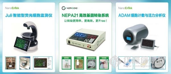 NanoEnTek公司生產的JULI智能型熒光細胞監測儀可直接放入CO2培養箱中使用,拍攝視頻,進(jìn)行細胞變化狀(zhuàng)態(tài)實時觀察。並且具有wifi無線傳輸功(gōng)能,可在有效(xiào)範圍內遠距離操控並檢測細胞狀(zhuàng)態。ADAM細胞(bāo)計數與活力分析儀采用最新的PI核染色法(fǎ)進行細胞計數,以提高計數的精確性,並可通過拍攝(shè)多達60個(gè)計數視野,極大提高細胞計數的準確性。